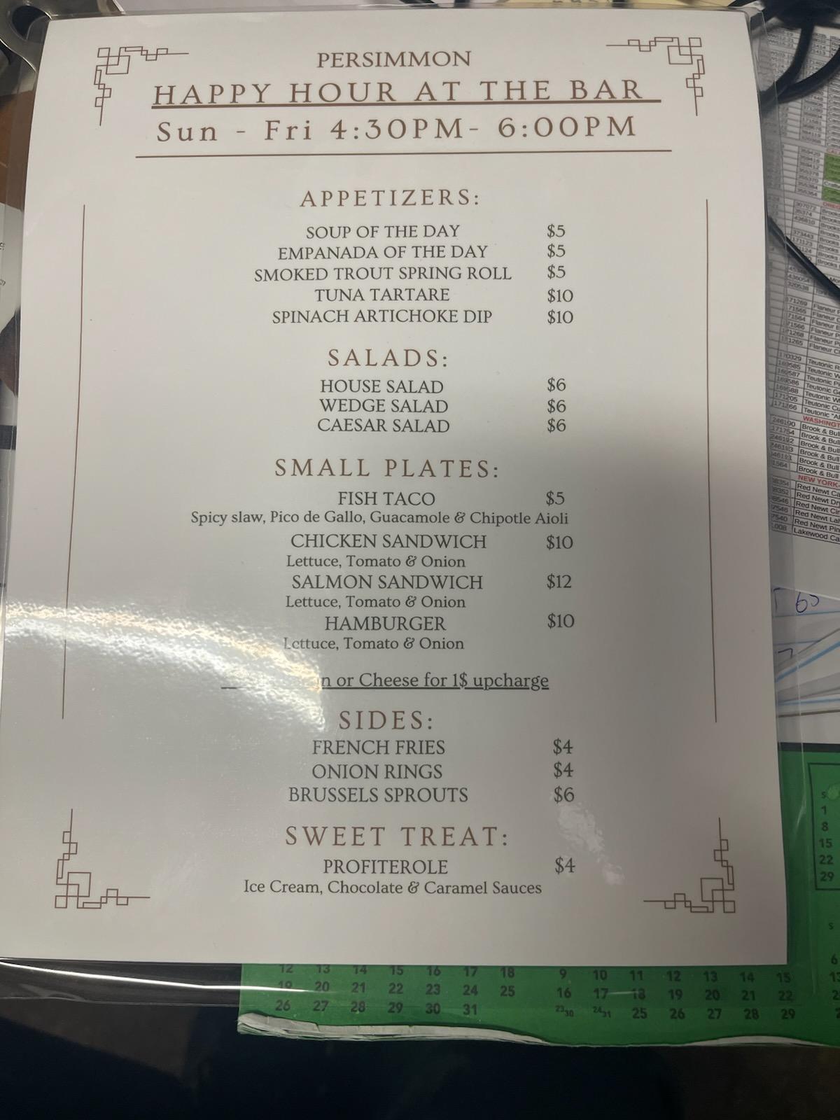 Persimmon is a contemporary American bistro offering a refined yet approachable dining experience, with a menu that emphasizes seasonal ingredients and inventive flavor combinations. Known for its elegant atmosphere and thoughtful presentation, the restaurant has become a favorite among locals and visitors alike seeking elevated cuisine in a relaxed, modern setting.